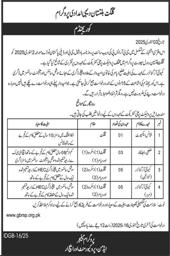 Gilgit Baltistan Rural Support Program GBRSP Jobs 2025